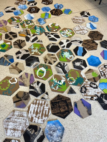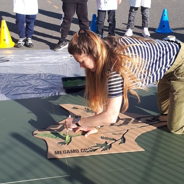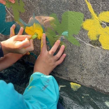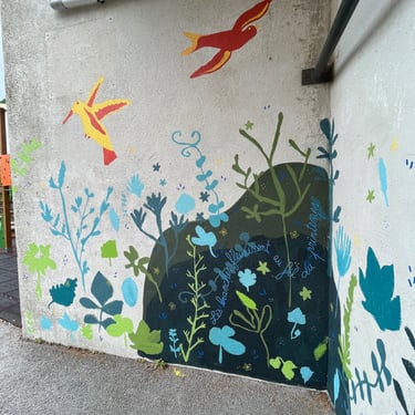Atelier de création d’une fresque murale dans la cours de l’école autour de la thématique de la nature.